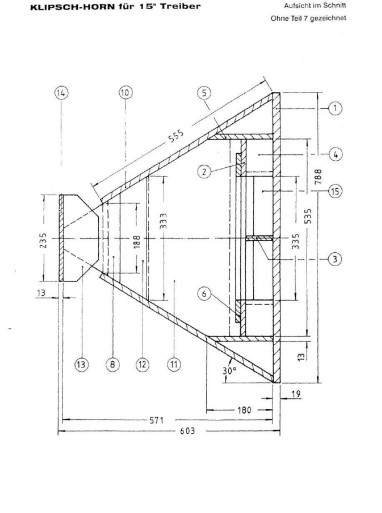 Einzelteile und Bauanleitung für das Eckhorn mit 15" Treiber (nach Klipsch) nur Bassteil |  | Klipsch Horn (1,7 MB) |  |  |